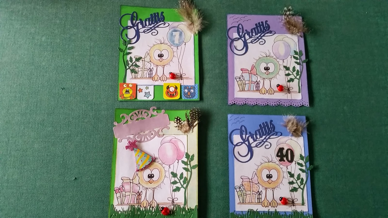 Har några som fyller år så gjorde lite annorlunda för att vara mej..men kul och söta blev dem. Har en massa stämpelmotiv och digital och som jag sagt innan kul att färglägga emellanåt och bra att ha till kort men inte kommit å det förrän nu .